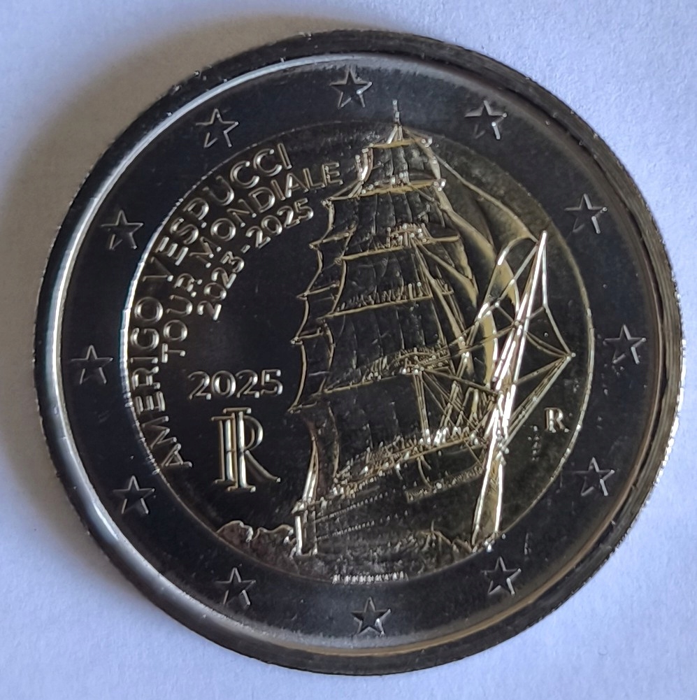 Druga moneta okolicznościowa wyemitowana w 2025 roku przez Włochy świętuje zakończenie światowej podróży legendarnego żaglowca „Amerigo Vespucci”, która odbyła się w latach 2023–2025.