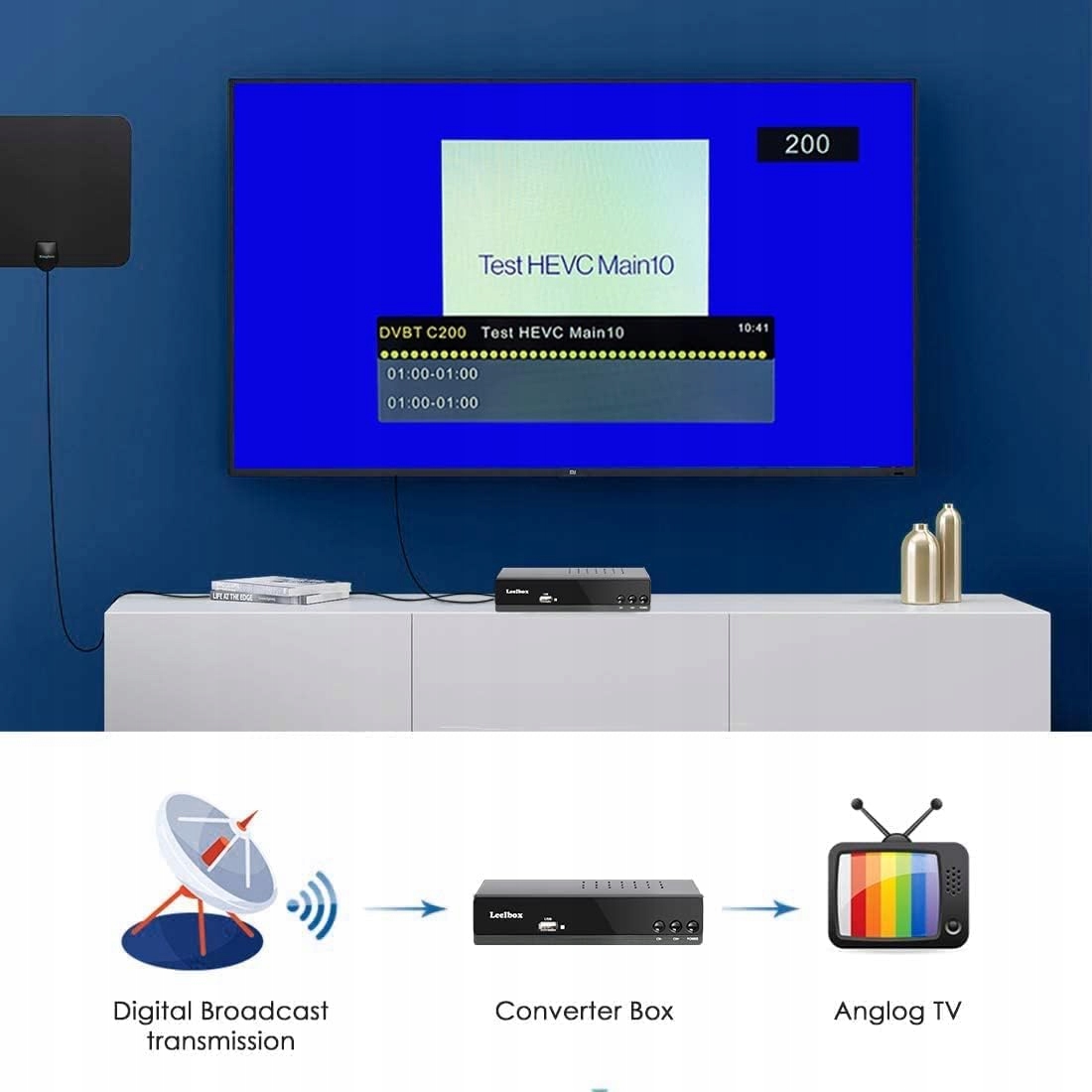 【Odbiornik DVB-C/DVB-T2】 Dzięki Leelbox DVB-C/DVB-T2 możesz cieszyć się kanałami HD. Cyfrowy inwerter DVB-C/DVB-T2 TV może odbierać telewizję cyfrową na żywo DVB-C/DVB-T2 z telewizora analogowego