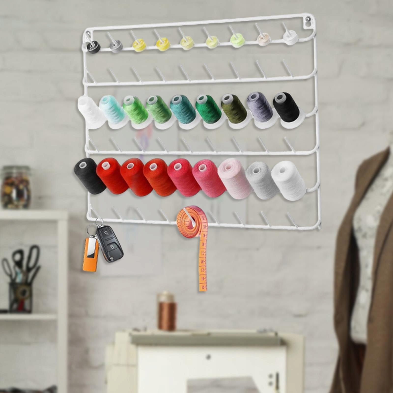 [Jakość konstrukcji]: Wykonany z najwyższej jakości żelaza z wykończeniem pieczonej farby i precyzją , ten organizer nici jest nie tylko estetyczny, ale także solidny i długi czas użytkowania