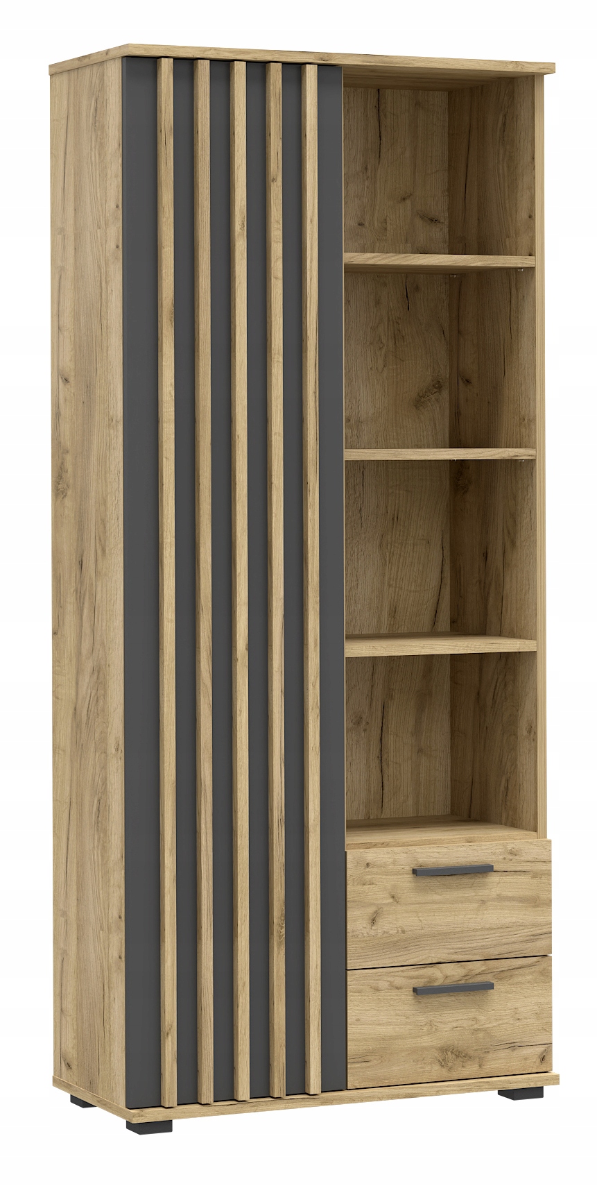 Kompletny zestaw mebli do pokoju młodzieżowego, który łączy praktyczne przechowywanie, nowoczesny design z lamelami i solidne wykonanie. Idealny dla ucznia, nastolatka lub studenta – zapewnia wygodną przestrzeń do nauki, przechowywania i codziennego użytkowania, a przy tym świetnie się prezentuje.