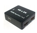 Rozdzielacz HDMI 1x2 obsługujący Full HD 3D i 4K*2K wykorzystuje jedno źródło HDMI, uzyskując dostęp do wielu odbiorników HDMI Rozdzielacz umożliwia łatwe rozdzielenie jednego urządzenia HDMI na dwa zgodne z HDMI monitory lub projektory Rozdzielacz można również umieścić na końcu długiego kabla HDMI do regeneracji sygnału HDMI