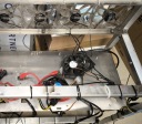 Przedmiotem jest stelaż po koparce kryptowalut, posiada kable, przejściówki i kilka wentylatorów