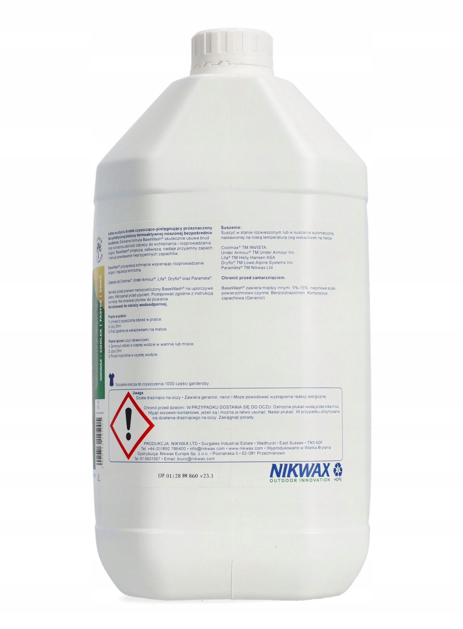 Płyn do prania Nikwax Basewash 5 L sprawdzi się do czyszczenia i pielęgnacji odzieży sportowej i outdoorowej. Środek usuwa nieprzyjemne zapachy i zapobiega ich powstawaniu w przyszłości.