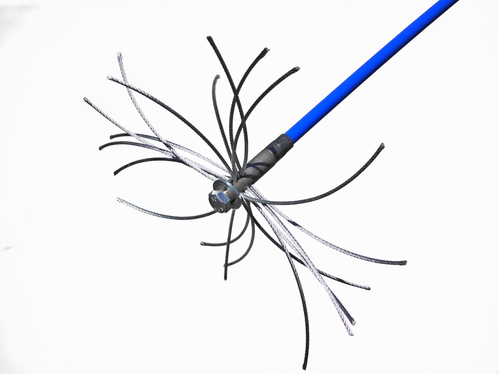 GŁOWICA Z LIN STALOWYCH - jest to innowacyjny typ głowicy czyszczącej. Jej zaletą jest siła czyszczenia oraz dostęp do bardzo ciasnych prześwitów w kominie. może mocno złożyć się i wcisnąć tam, gdzie szersze głowice nie przejdą. Po rozkręceniu osiąga średnice ok 300mm - nadaje się więc do czyszczenia większości kominów. Jest uniwersalna - można czyścić nią kominy murowane, ceramiczne oraz stalowe. Posiada wymienne wkłady stalowe - bardzo szybko wymienialne - wystarczy odkręcić 1 śrubę.