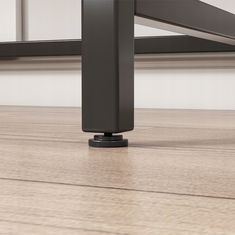 Blat wykonany z odpornej na zarysowania i łatwej w czyszczeniu płyty MDF gwarantuje trwałość przez lata. Metalowa rama zapewnia stabilność konstrukcji, co czyni biurko wytrzymałym nawet przy intensywnym użytkowaniu.