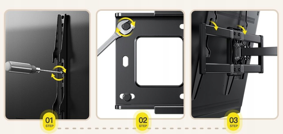 Ten uchwyt ścienny do telewizora można łatwo obracać +/- 45°, zapewniając doskonały widok z dowolnego miejsca w pomieszczeniu.