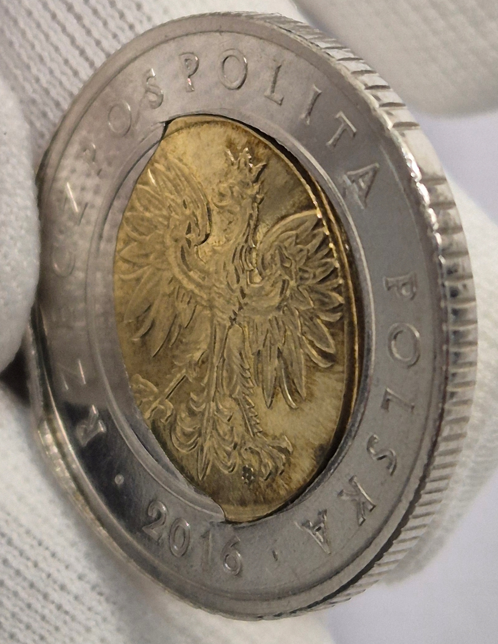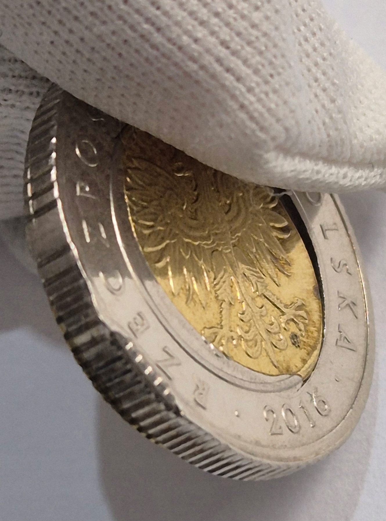 Tego typu egzemplarze to prawdziwe perełki wśród monet obiegowych. Są świadectwem unikalnych błędów menniczych, które fascynują numizmatyków i stanowią ważne ogniwo historii produkcji monet. Pierwszy raz spotykamy tak efektowny destrukt.