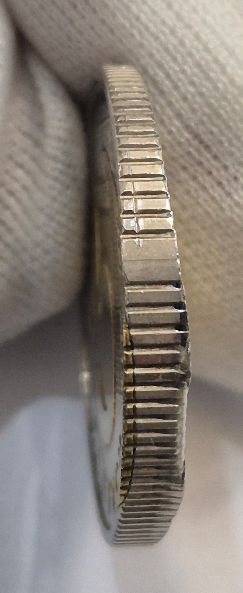✔️ Rdzeń: przesunięty względem pierścienia, co nadaje monecie wyjątkowy wygląd i rzadko spotykaną deformację