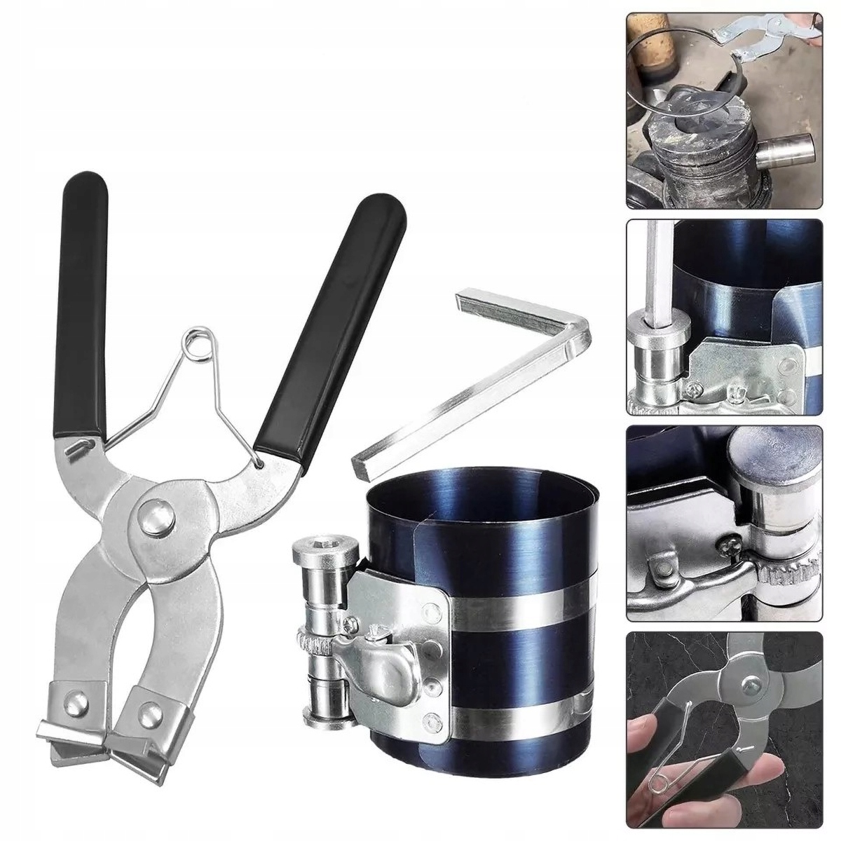 1. [Łatwy w instalacji] Nasz instalator pierścieni tłokowych ułatwia instalację pierścieni tłokowych. Wykonany jest z 65-procentowej stali manganowej, która jest trwała.