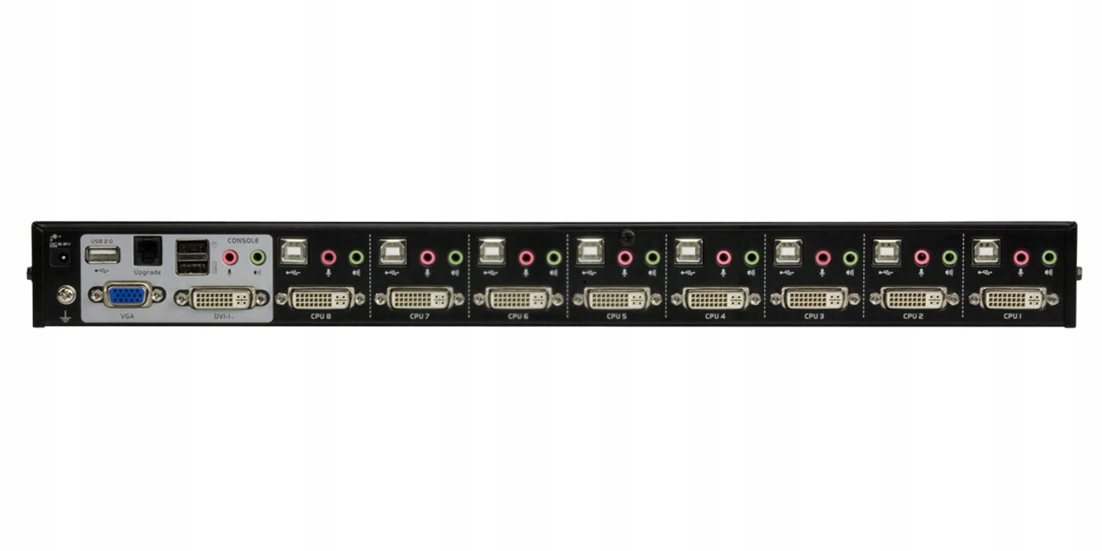 • punkt znaku wypunktowania: Jedna konsola USB steruje osiem komputerów z pojedynczym link-DVI lub VGA i dwoma innymi urządzeniami USB 2.0, Obsługuje zarówno cyfrowe (DVI), jak i analogowe (VGA) odtwarzanie obrazu – możliwe mieszanie, Możliwość przełączania kaskadowego na trzech poziomach – sterowanie do 512 komputerów, Wbudowany 2-portowy koncentrator USB 2.0, Całkowicie kompatybilny ze specyfikacją USB 2.0
