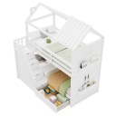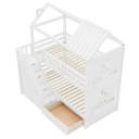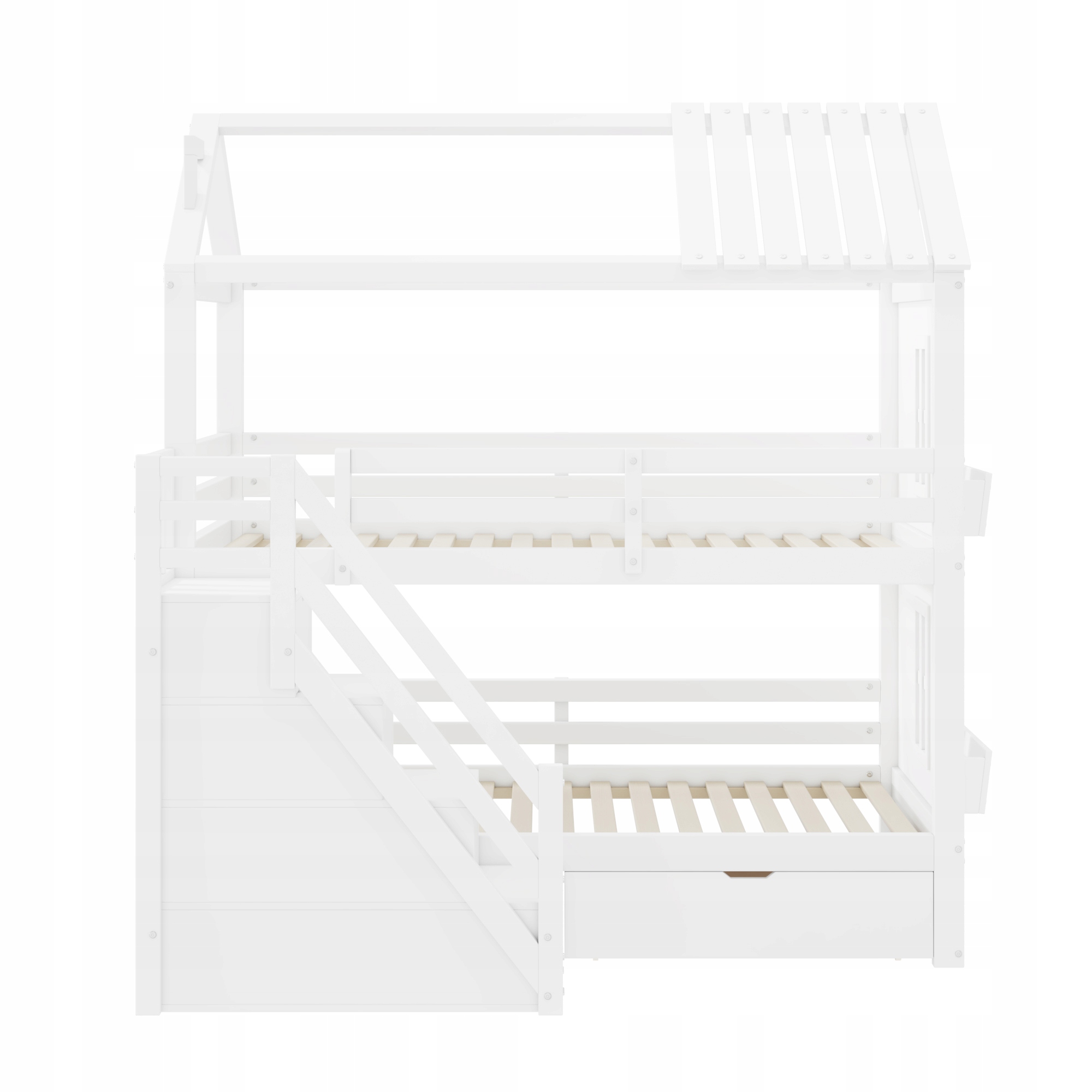 Łóżko piętrowe dla dzieci, 90*200 cm, wielofunkcyjne łóżko dla dzieci, ze schodami do przechowywania oraz szufladami i półkami, bardzo duża przestrzeń do przechowywania, bez materaca, sosna + MDF, biały