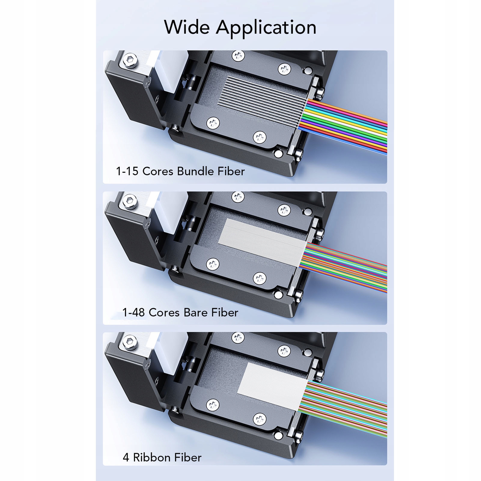 Zakres usuwania: 1-15 rdzeni włóknisty, 1-48 rdzeni gołego włókna, 2-24 rdzenie wstążki, 1-12 rdzenie nie widoczne włókno