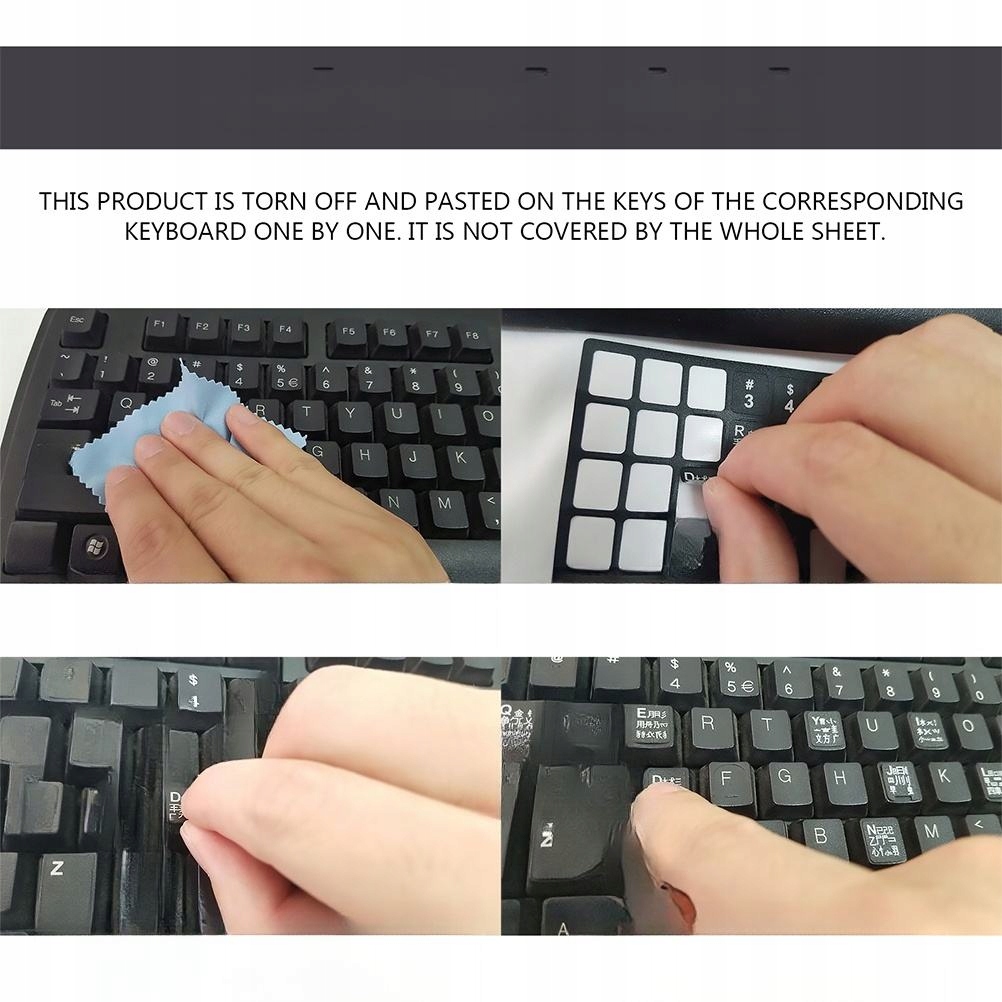 ✅Przed użyciem należy wyczyścić powierzchnię nasadki klawiszy, nie i utrzymywać ją w suchości, a następnie zainstalować naklejki ręcznie w kolejności.