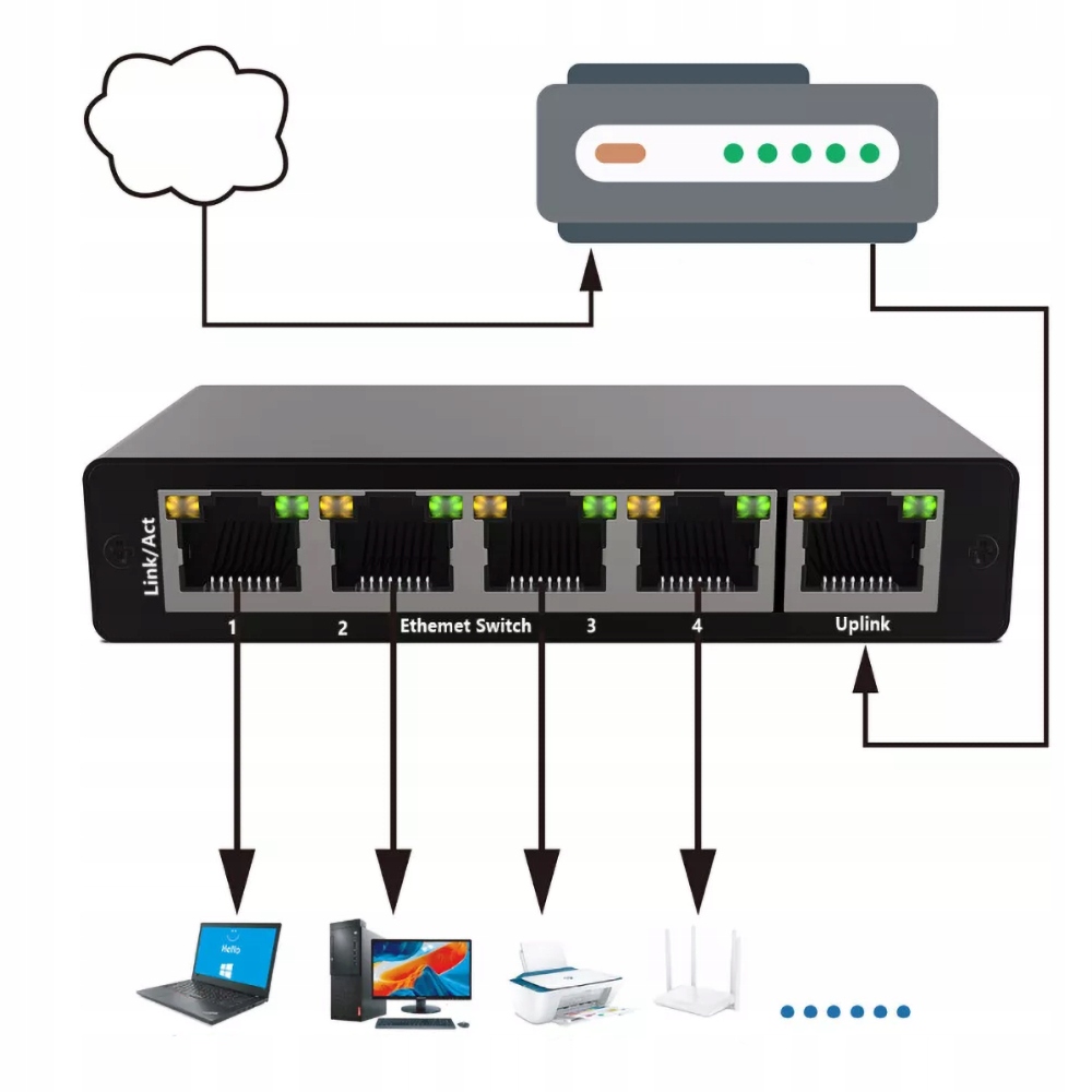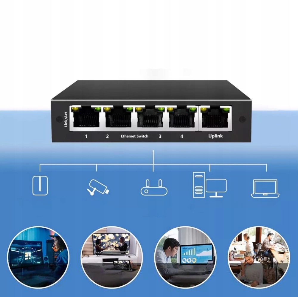 1 x 5-portowy przełącznik sieciowy RJ45 Gigabit