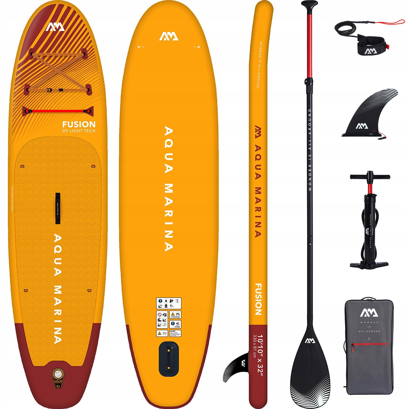 Aqua Marina Fusion to wszechstronny model, który przeszedł znaczącą metamorfozę w 2023 roku. Wyposażony jest w bardziej zaokrąglony kształt zarówno na dziobie, jak i rufie, co poprawia jego ogólną zwrotność. Deska ma 330 cm długości, 81 cm szerokości i 15 cm grubości oraz maksymalne zalecane ciśnienie robocze 15 PSI. Waży zaledwie 8,8 kg, co sprawia, że jest bardzo lekki i łatwy w transporcie.