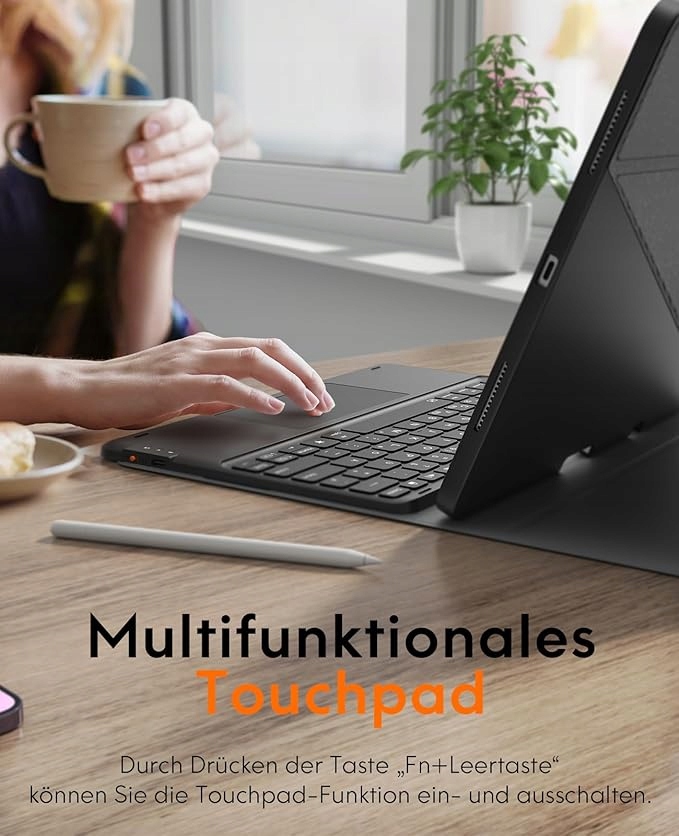 Profesjonalne akcesorium 2w1 – klawiatura i ochrona w jednym! Zmieniaj iPada w funkcjonalny laptop dzięki solidnemu etui z wielofunkcyjną klawiaturą QWERTZ, kolorowym podświetleniem i precyzyjnym touchpadem.