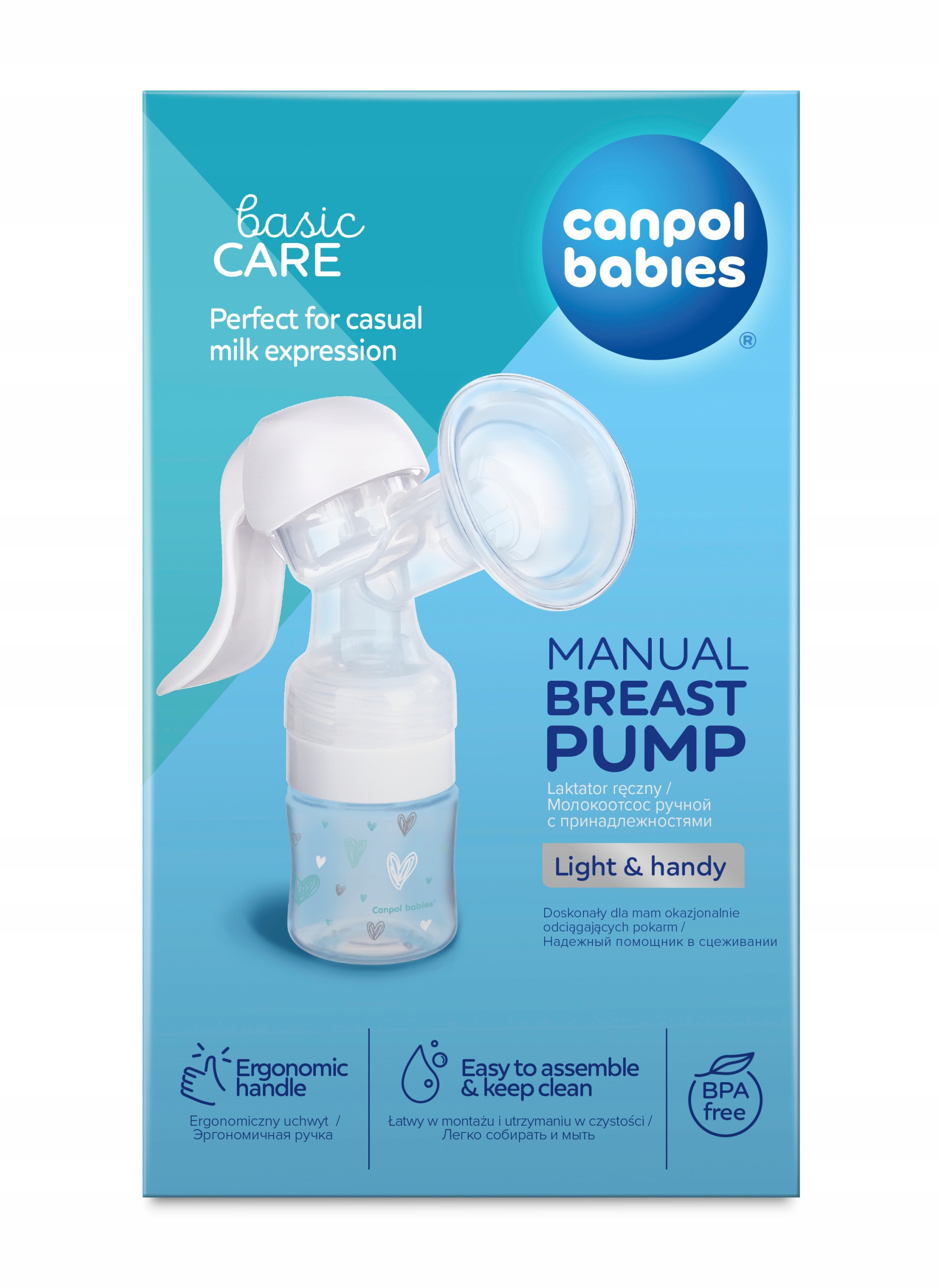 Ergonomiczny uchwyt umożliwia wygodne trzymanie laktatora podczas odciągania pokarmu. Prosty mechanizm laktatora z pompką pozwala na komfortowe odciąganie pokarmu jedną ręką przy zastosowaniu dość niewielkiej siły. Wyprofilowany kształt lejka sprawia, że lejek szczelnie przylega do piersi, a silikonowa nakładka zapewnia delikatne i skuteczne odciąganie. Laktator ręczny Canpol babies jest bardzo cichy, podczas korzystania z urządzenia nie jest wytwarzany hałas mogący obudzić śpiącego maluszka lub wywołać u niego niepokój. Bardzo prosta budowa laktatora pozwala na precyzyjne umycie urządzenia oraz łatwy montaż. Niewielka waga i rozmiar laktatora ułatwiają przechowywanie w domu i w podróży.