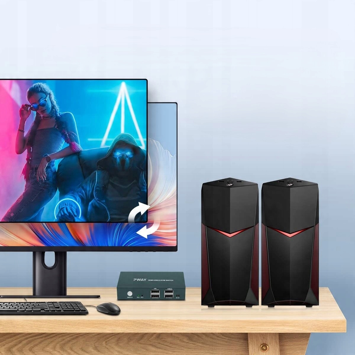 (Zestaw zawiera: KVM Switch-Host X1 / kabel USB-AB X2 / kabel HDMI X2 / Micro-USB X1 / podnóżek X4).