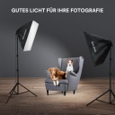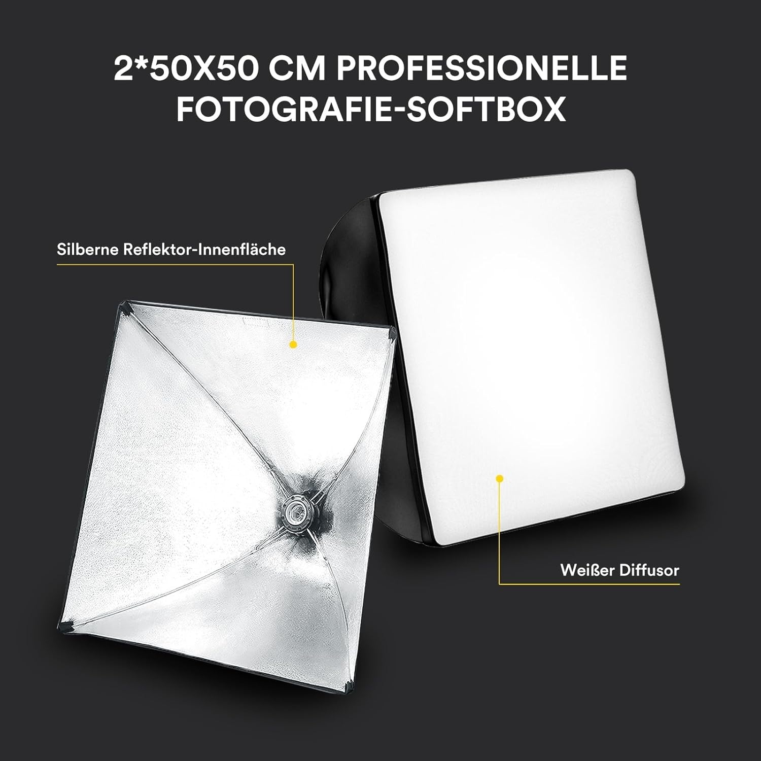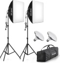 Kompletny Zestaw Softbox: ten zestaw zawiera wszystko, czego potrzebujesz do robienia profesjonalnych zdjęć. Zawiera: nylonowy futerał premium x1, softbox 50 x 50 cm x 2, żarówki LED 50 W x 2, statyw x 2, biały dyfuzor x 2, instrukcję obsługi x 1