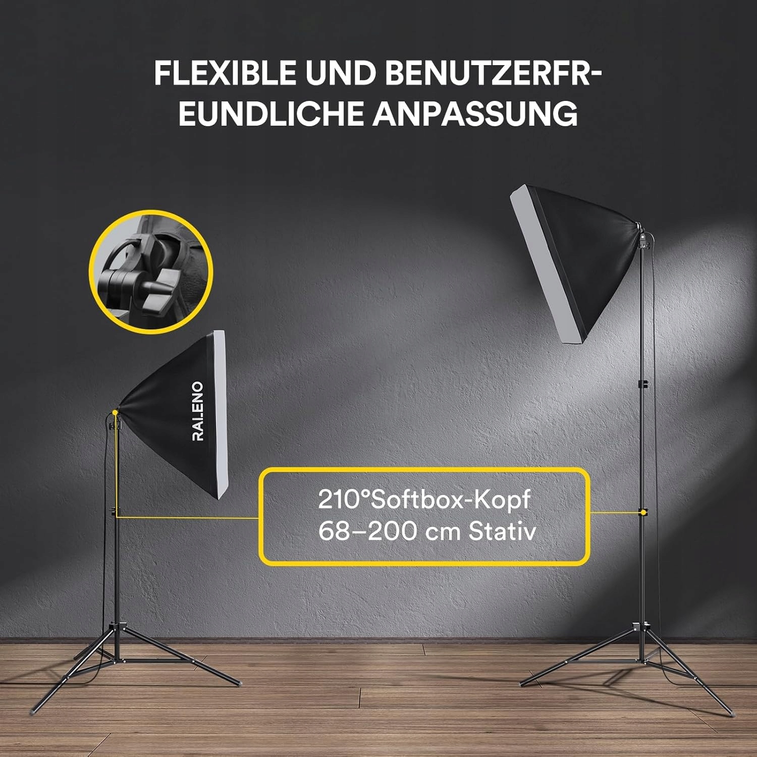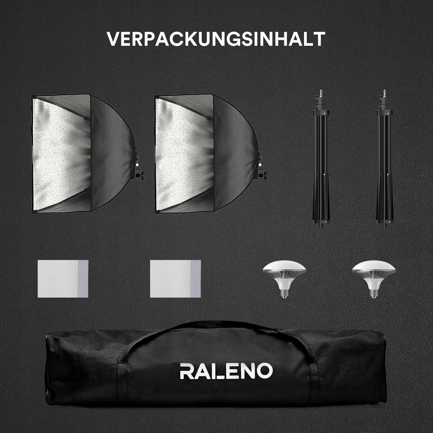 RALENO Zestaw Oświetlenia Softbox, Zestaw Oświetlenia Fotograficznego 50x50 cm Cali z Żarówkami LED (50W | 5500K | CRI>97 | 3m Kabel) Miękki Pojemnik do Nagrywania/Fotografii Portretowej | Model: PS70