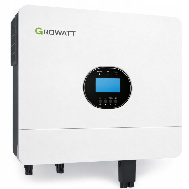 Growatt SPF 6000 ES PLUS (częstotliwość energii słonecznej) to rodzaj hybrydowego falownika słonecznego przeznaczonego do użytku w domowych i komercyjnych systemach energii słonecznej. Jest to połączenie falownika, ładowarki akumulatorów i przełącznika transferu, który zarządza przepływem energii między panelami słonecznymi, akumulatorami i siecią elektryczną.