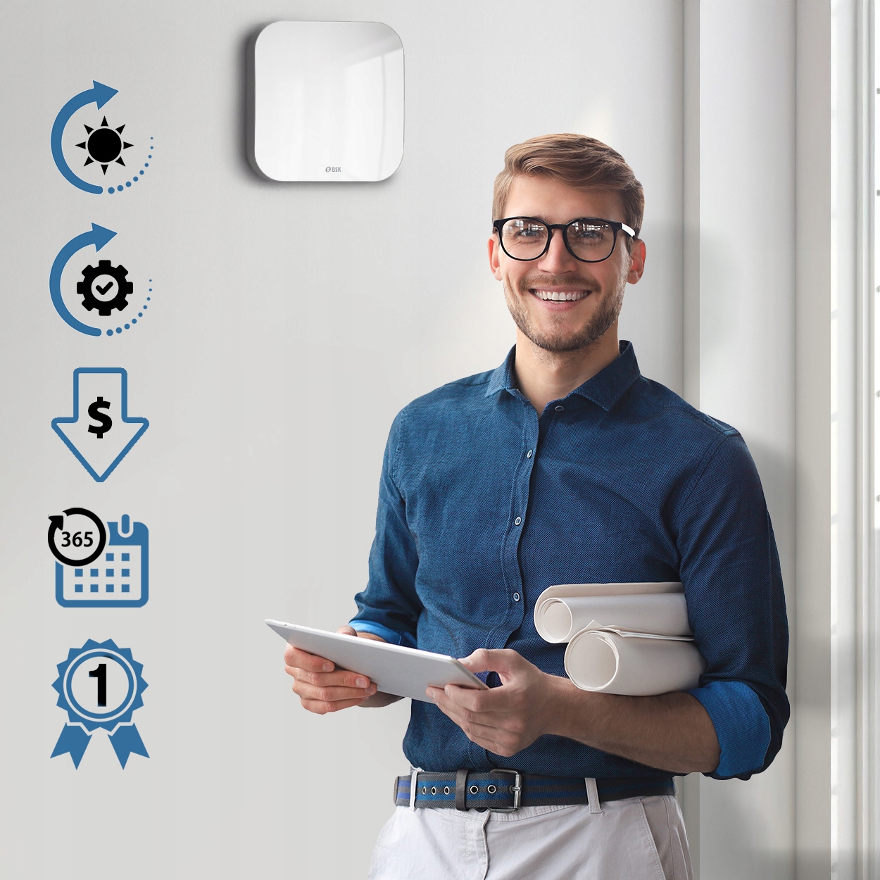 Wbudowany moduł WiFi umożliwia bezprzewodowe parowanie wielu urządzeń w Twoim domu, co pozwala na stworzenie strefy wentylacji, w których połączone urządzenia działają w ciągłej harmonii. Opcja ustawienia indywidualnych parametrów pracy dla każdego pomieszczenia pozwoli Ci stworzyć niezależne strefy wentylacji.