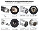 4 rodzaje adapterów w zestawie:adapter 1: wtyk typu F męski, adapter2: wtyk audio 3,5 mm typu jack, adapter 3: adapter złącza żeńskiego IEC RTV, adapter 4: adapter złącza męskiego IEC RTV