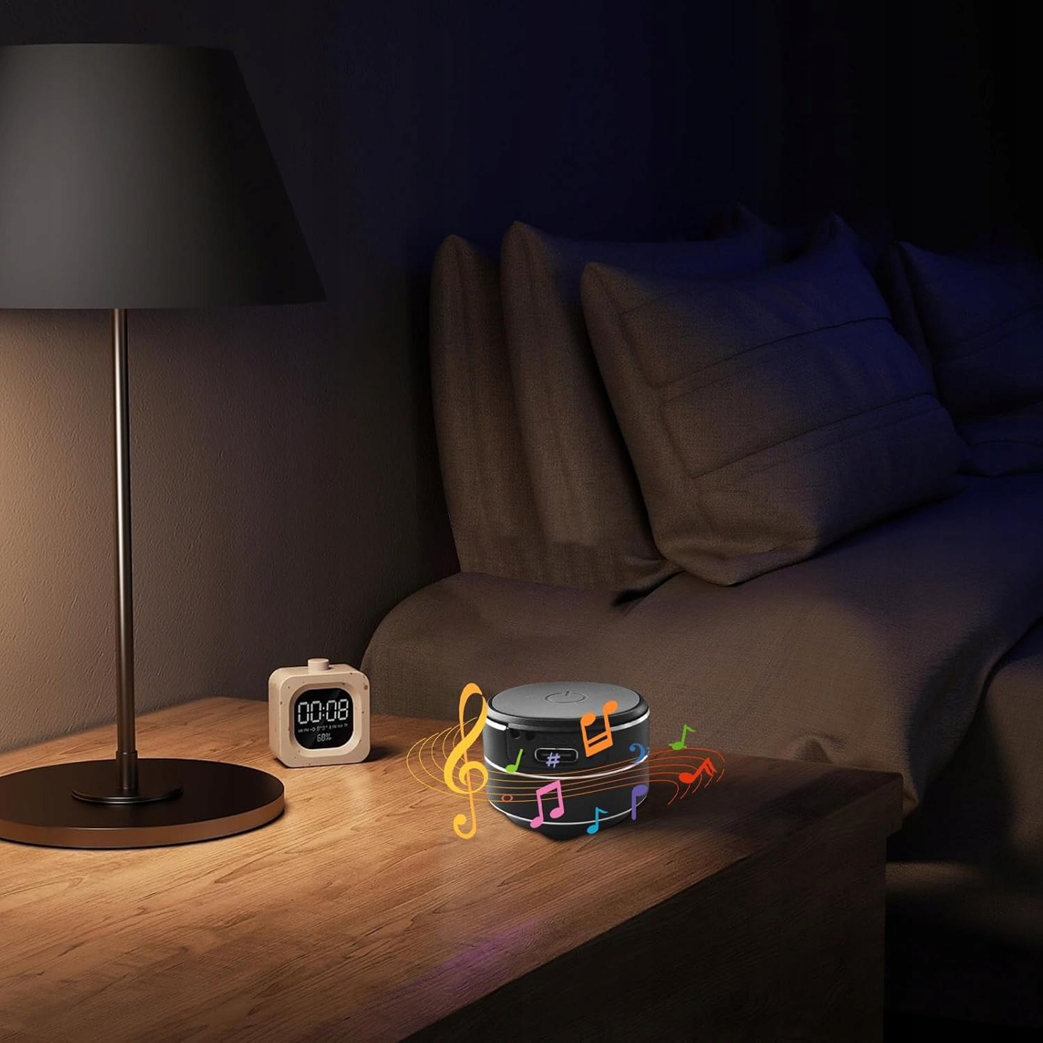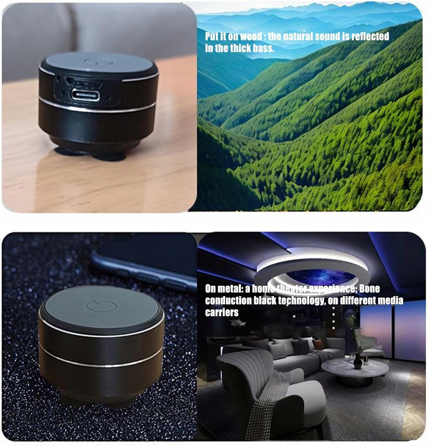 Słuchanie w każdej lokalizacji: Niezależnie od tego, czy umieścisz go na stole, ścianie czy oknie, głośnik rezonuje dźwięk przez różne powierzchnie, dzięki czemu idealnie nadaje się na imprezy na świeżym powietrzu, wylegiwanie się w pomieszczeniach, muzykę w łazience lub atmosferę w sypialni.