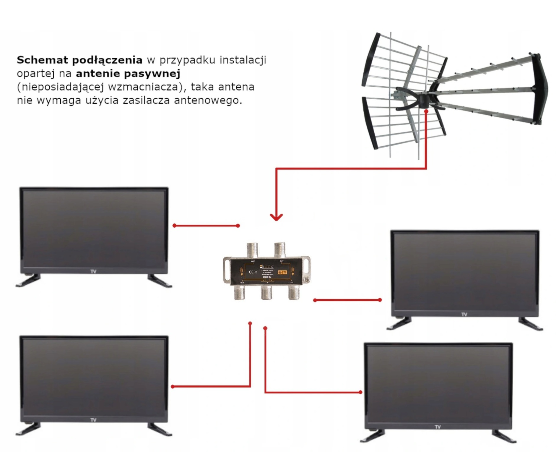 Bardzo dobrej jakości rozgałęźnik firmy Libox, który umożliwia rozdzielenie sygnału z zakresu 5 do 2400MHz na dwa osobne sygnały.