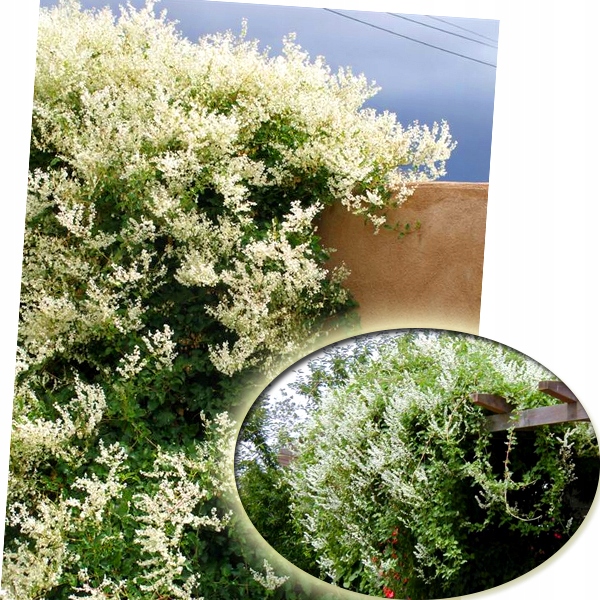 Fallopia Baldshuanica to najsilniej rosnące pnącze w naszym klimacie. Dorasta do wysokości 10-15 m, ma pędy owijające się wokół podpór, a jego roczne przyrosty mogą osiągnąć 6 metrów długości. Kwiaty białe, drobne, ale bardzo liczne, stanowią dekorację od początku sierpnia do mrozów. Liście oszczepowate, zielone, opadają po silnych przymrozkach. Nadaje się świetnie jako roślina maskująca, do okrywania pergoli, altan, płotów, ekranów dźwiękochłonnych, brzydkich konstrukcji, porastania starych drzew.
