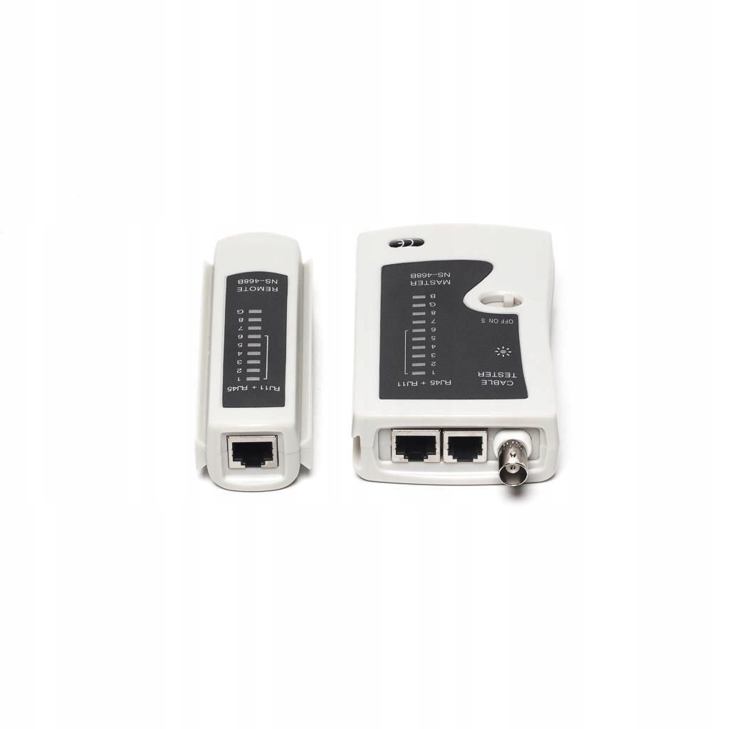 Tester sieciowy do podstawowego testowania połączeń sieciowych. Przeznaczony do testowania połączeń opartych na przewodach LAN typu skrętka, kabli telefonicznych oraz kabli koncentrycznych. Szczególnie polecany do sieci komputerowych. W zestawie znajduje się jednostka główna oraz terminator to zakładania na końcu testowanego połączenia.