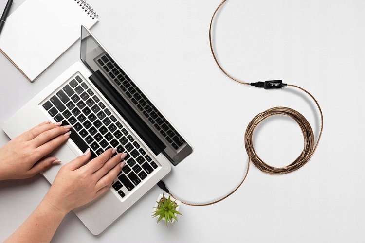 Aktywny kabel USB zapewnia wspaniałą jakość sygnału oraz napięcie odpowiadające specyfikacji USB 2.0 na dużą odległość.