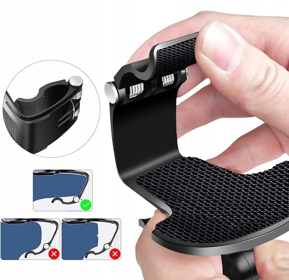 Uchwyt można zamontować na desce rozdzielczej, osłonie przeciwsłonecznej, lusterku wstecznym, a także wykorzystać w biurze lub w domu – np. na stole lub stoliku nocnym. To praktyczny i wszechstronny dodatek do Twojego pojazdu.