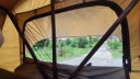 Podłoga wykonana z aluminium wypełniona pianką izolacyjną, wewnątrz aluminiowy "plaster miodu". Podłoga namiotu stanowi doskonałą izolację nawet w niskich temperaturach. Wierzchnia wewnętrzna warstwa w kształcie plastra miodu wchłania ewentualną wilgoć. Na podłodze materac grubości 6 cm z zdejmowalnym pokrowcem. Okna podsiadają otwieraną moskitierę, zewnętrzne okiennice rozpinane na szpilkach oraz od wewnątrz szczelne zamknięcie. Otwory wejściowe z moskitierami oraz szczelnym zamknięciem. U góry namiotu regulowana wentylacja (z moskitierą) oraz 2 duże otwierane okna dachowe z moskitierami! Nad oknami tropik posiada wszytą profesjonalną folię. Namiot całkowicie zabezpieczony przez niepożądanymi gośćmi (komarami, insektami).