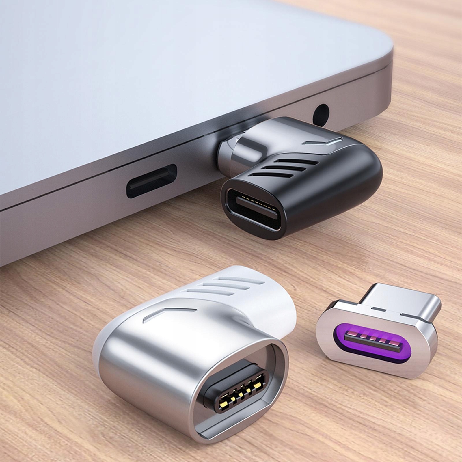 Plug and play : Wbudowany inteligentny chip, typ c żeński na typ C (magnetyczny) boczny adapter magnetyczny 100 W, wyjście o dużej mocy 100 W