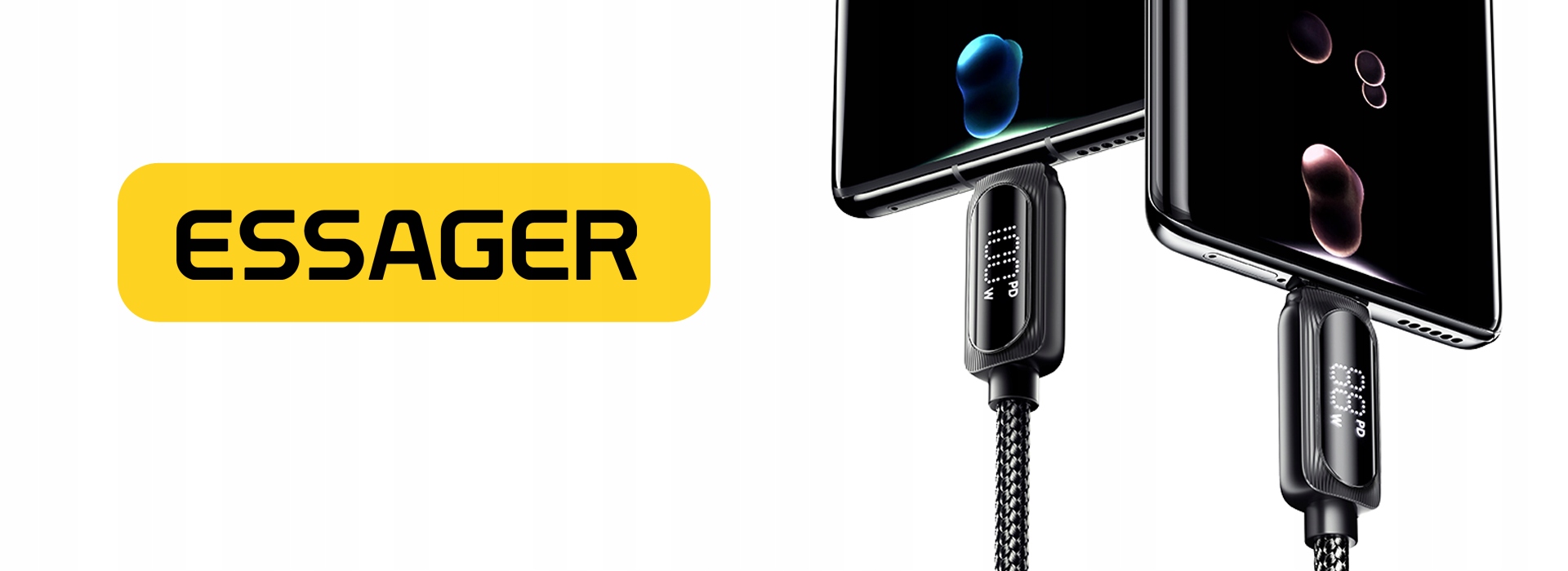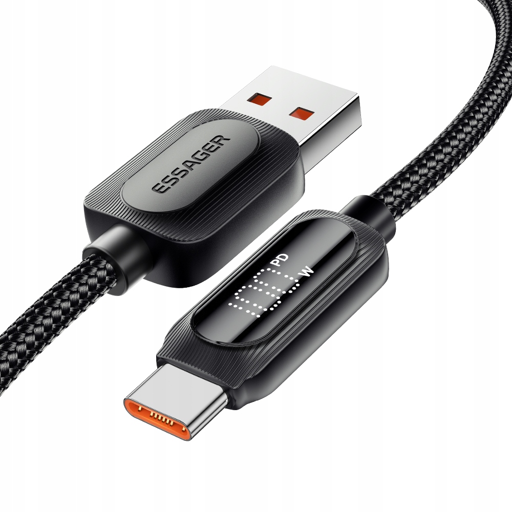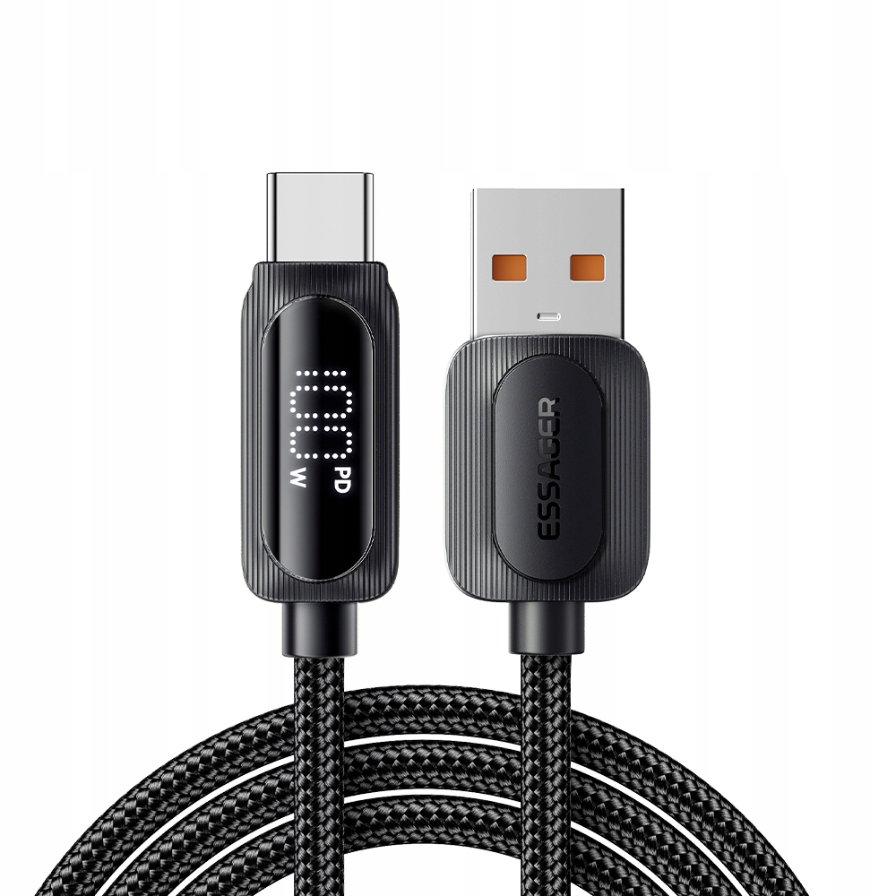 ⚡ NIESAMOWICIE MOCNY I WYTRZYMAŁY PRZEWÓD USB – USB-C ESSAGER® 7A 100W 2m LED LCD