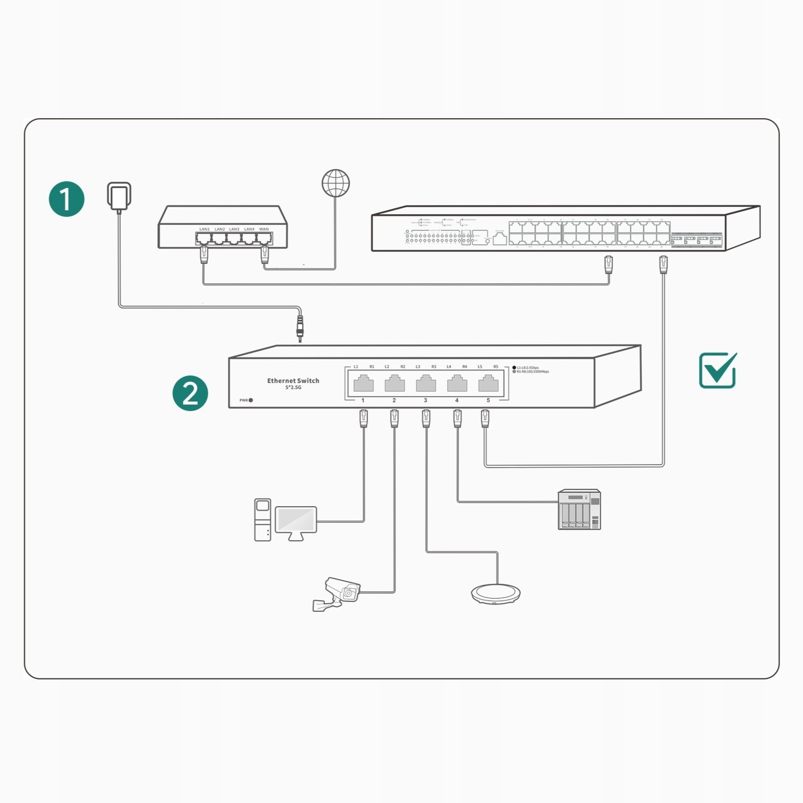 ✅ Urządzenie wyposażone jest w 5 portów RJ45 o przepustowości do 2.5Gb/s, dzięki czemu oferują aż do 2,5 raza większą szybkość niż standardowe, co zapewnia błyskawiczny transfer danych i pełne wykorzystanie możliwości nowoczesnych urządzeń.