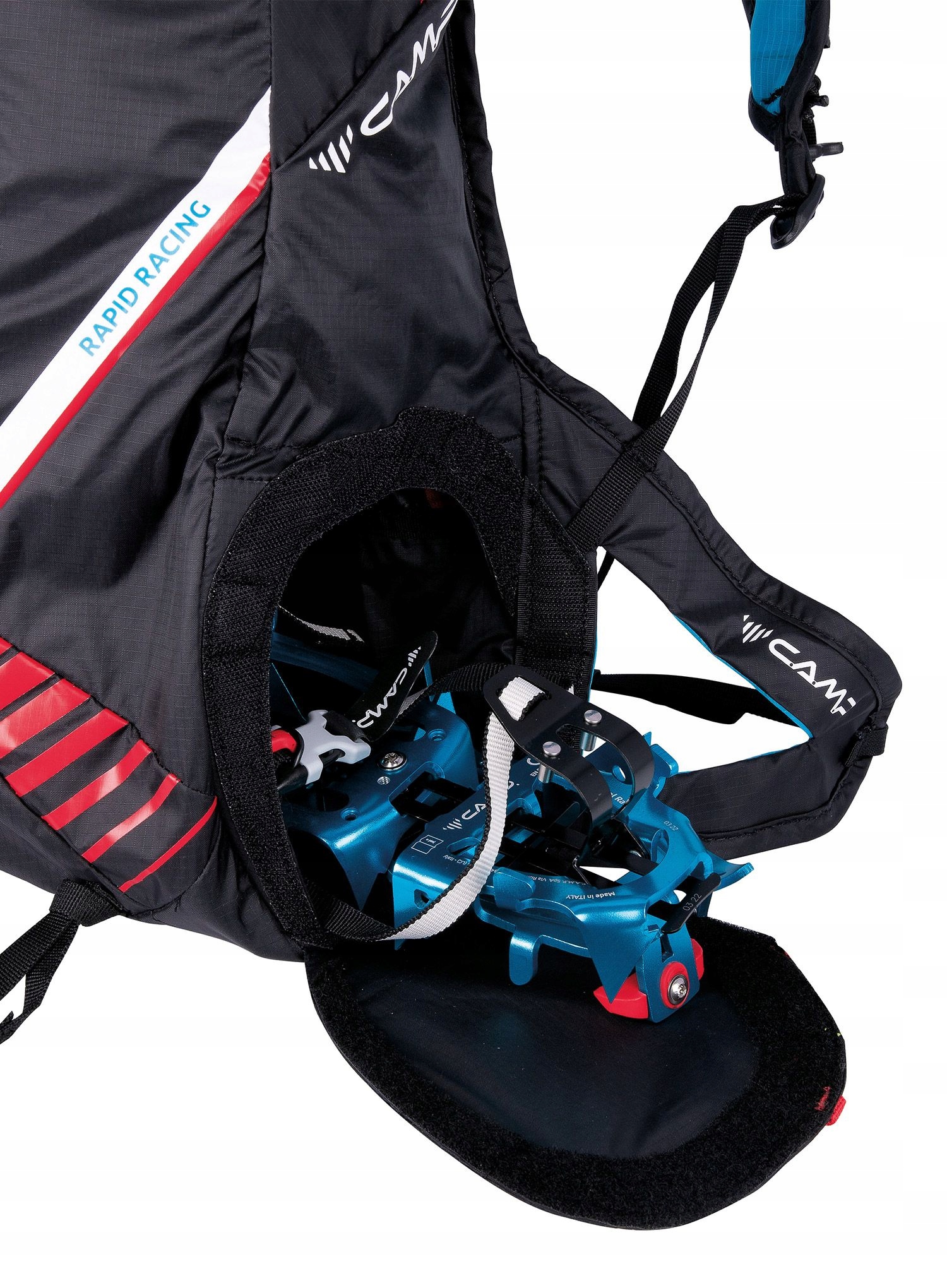 Tym, co wyróżnia plecak skiturowy Camp Rapid Racing 20 L - black jest system mocowania nart X-Press. To wygodne i efektywne rozwiązanie. Hak mocujący narty został zoptymalizowany, aby chować się automatycznie, gdy nie jest używany. Dodatkowy system nośny na drugą parę nart z górnym i dolnym paskiem pozwala na przenoszenie dodatkowego sprzętu, a gdy nie jest potrzebny, można go schować. Boczna kieszeń na raki jest łatwo dostępna bez konieczności zdejmowania plecaka. Plecak jest wyposażony w wewnętrzną kieszeń na akcesoria, kieszeń na łopatę i sondę lawinową, a także jest kompatybilny z systemem nawadniania (do kupienia osobno).