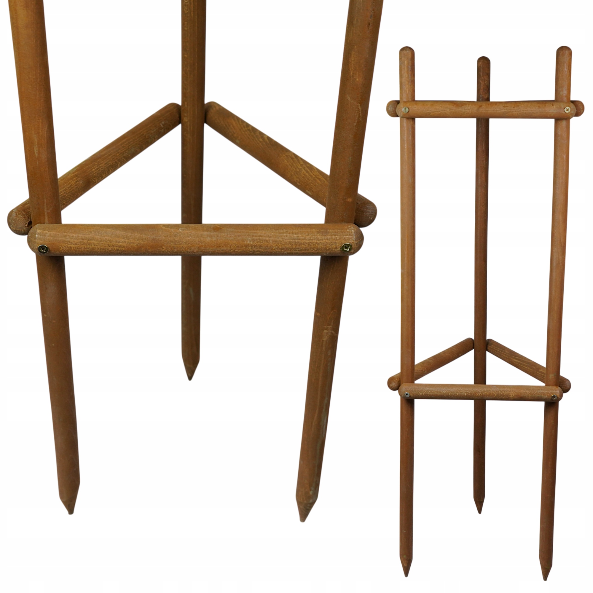 Trójkątna podpora do młodych drzewek, takich jak katalpa, wykonana z drewna bukowego i pokryta podwójną warstwą drewnochronu w kolorze brązowym. Zabezpieczenie impregnacyjne zwiększa odporność na wilgoć i czynniki atmosferyczne, wydłużając trwałość konstrukcji. Podpora sprawdzi się w ogrodzie oraz w przestrzeni miejskiej, zapewniając stabilizację drzewka i chroniąc je przed przechyłami spowodowanymi wiatrem.