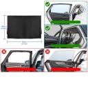 Nasza osłona przeciwsłoneczna na szybę samochodową składa się z dwóch warstw materiału: jedna to półprzezroczysta siatka, a druga to nieprzezroczysta tkanina zacieniająca. Możesz wybierać pomiędzy pełnym lub częściowym zacienieniem, zależnie od swoich potrzeb. Tylko do tylnych bocznych szyb podczas jazdy! Nie stosować na szybach ograniczających widoczność kierowcy.
