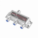 • Dodatkowo rozgałęźniki te świetnie sprawdzą się wszędzie tam, gdzie konieczne jest przenoszenie napięcia po kablu koncentrycznym, np. celem zasilania LNB SAT, anteny naziemnej z przedwzmacniaczem lub zasilania wzmacniacza masztowego. Zasilanie przenoszone są od wyjść do wejścia, napięcie nie jest przenoszone pomiędzy wyjściami.