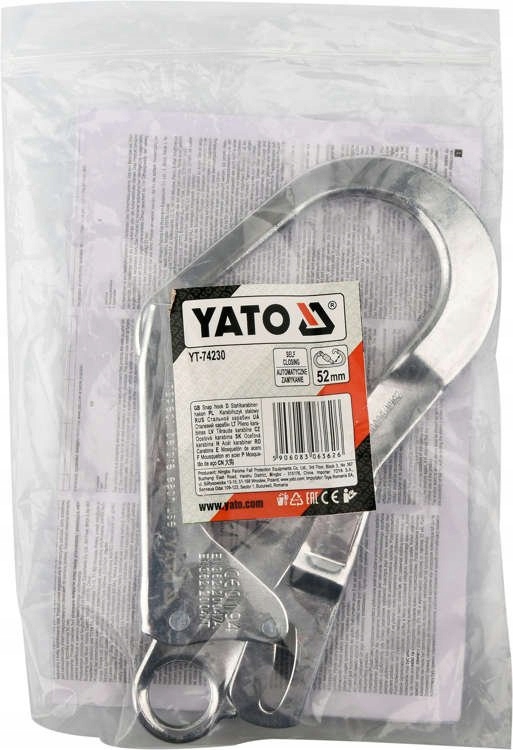 Zatrzaśnik YT-74229 został przetestowany w akredytowanym przez UE laboratorium i spełnia wymagania normy EN 362:2004 w klasie B.