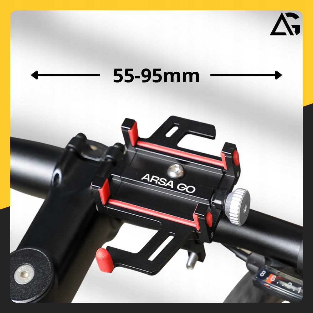 Uchwyt może być montowany na kierownicach o średnicy od 22 mm do 31,8 mm co czyni go uniwersalnym rozwiązaniem dla rowerów, hulajnóg, motorów oraz wózków dziecięcych.