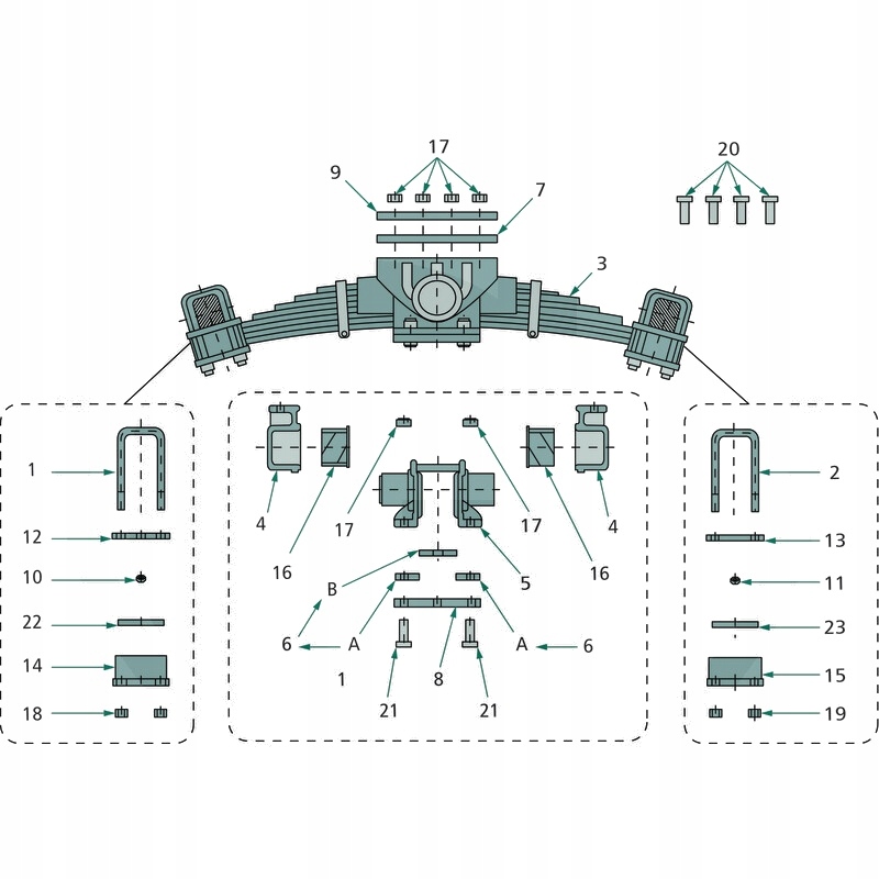 Kategoria: Części do przyczep, naczep i podwozia / Hamulec / Części zamienne do przyczep załadowczych Kaweco / Agregat / Boogie 24 t 1700 rozstaw osi