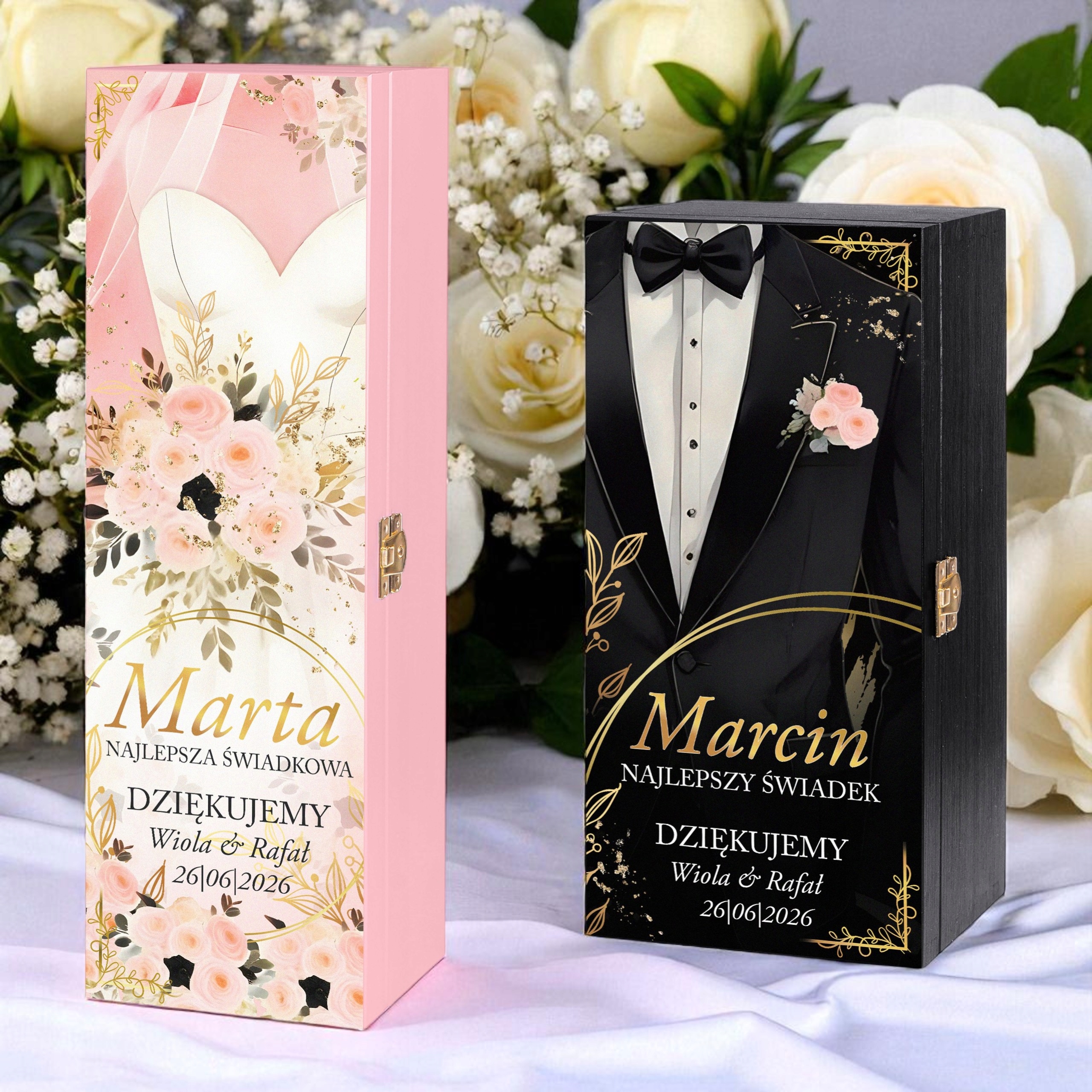 ➡️ Jeśli szukasz oryginalnego i stylowego podziękowania dla świadków z okazji ślubu, te pudełka na alkohol będą idealnym wyborem. Eleganckie i praktyczne, idealnie podkreślą wyjątkowy charakter tej okazji.