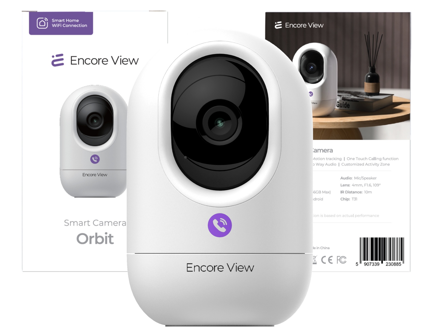 Inteligentna kamera Encore View do użytku w pomieszczeniach, sterowana aplikacją.