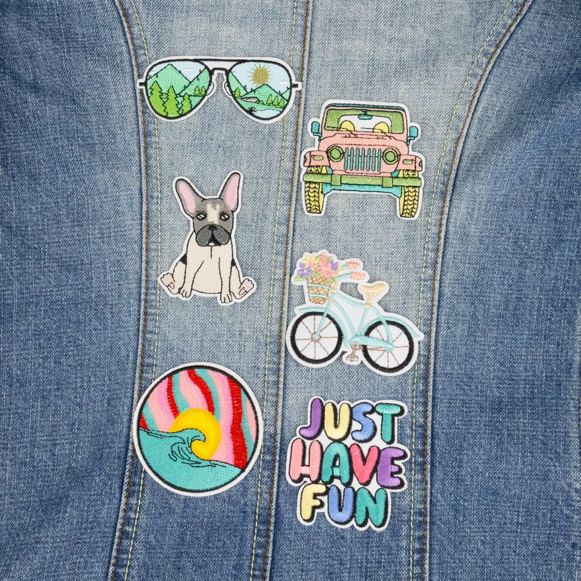 Naprasowanki są bardzo starannie wykonane. Widać dokładnie wycięte krawędzie konturu i precyzyjny haft maszynowy.