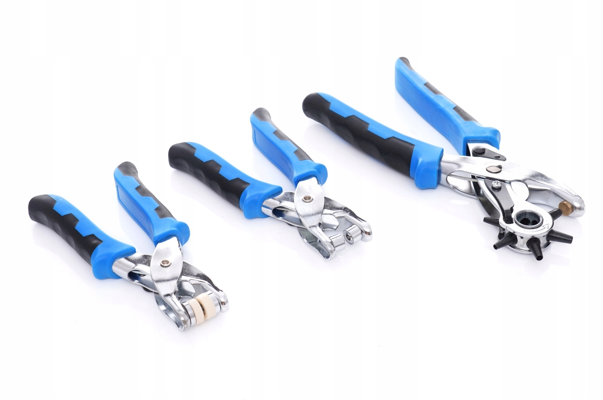 Высококачественный кожевенный набор 5в1 идеально подходит для изготовления отверстий, установки петель или защелки. Плоскогубцы предназначены для таких материалов, как: войлок, кожа, текстиль, пленка с пластик, картон и многое другое. Наш комплект незаменим при переделках портной и обувной одежды и обуви. Он очень прост в использовании и эргономичен: имеет, среди прочего, крепкие ручки, двухкомпонентные, нескользящие, с замком безопасность.