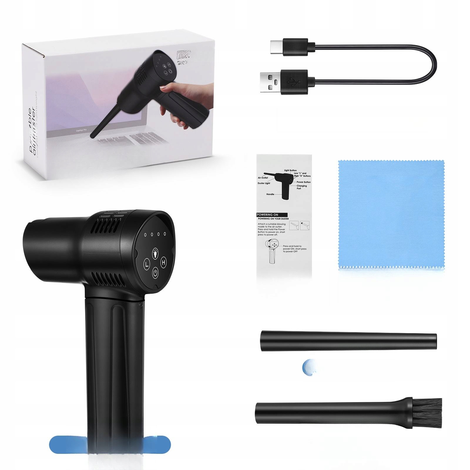 ✅1 x Air Duster 2 x Dysze zamienne 1 x kabel USB do danych typuc 1 x Ściereczka do czyszczenia 1 x Instrukcja obsługi