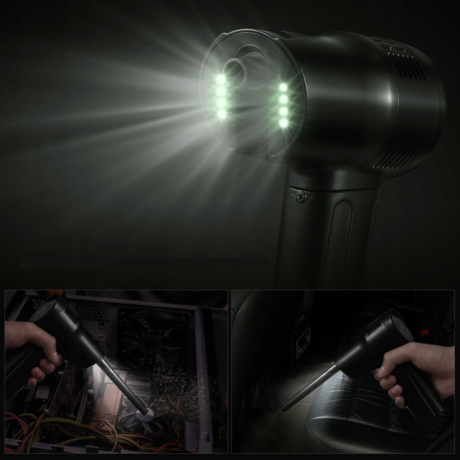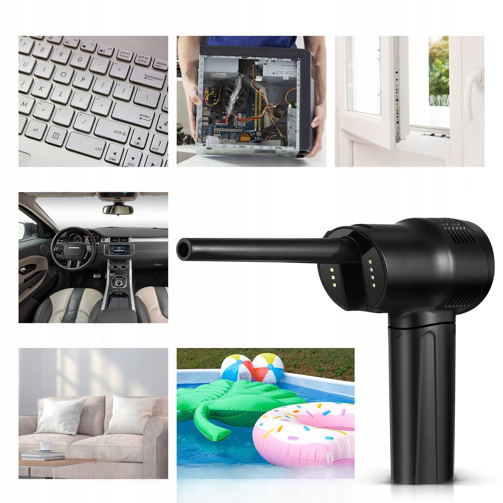 ✅Ten produkt to wielofunkcyjny odpylacz na sprężone powietrze. Może kurz na powierzchni komputerów, klawiatur i zabawek, a także może nadmuchać balony, pierścienie do pływania, nadmuchiwane łóżka itp. Nadaje się do sprzątania w gospodarstwie domowym i czyszczenia wnętrza samochodu. Bezprzewodowa konstrukcja, łatwa w użyciu, łatwa do radzenia sobie z różnymi problemami z czyszczeniem.